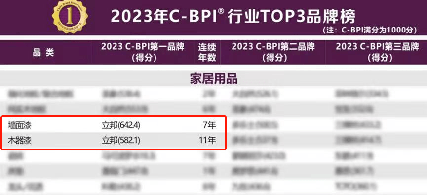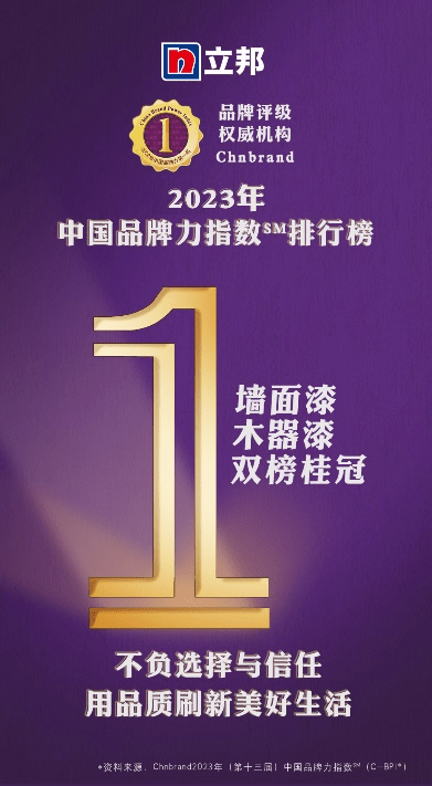 立邦墻面漆與木器漆斬獲2023年中國(guó)品牌力指數(shù)(C-BPI)行業(yè)第一