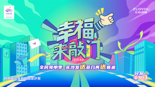 4月11日-5月5日,正式成為杭州亞運會官方供應商的左右家居推出一系列幸?;仞亜幼?#xff0c;為左右沙發(fā)幸福用戶送上驚喜好禮,再次點燃「423左右幸福日」熱潮。今年迎來「423左右幸福日」第9季,左右沙發(fā)以#423左右幸福日?幸福來敲門#為主題,推出全民免單季,買沙發(fā)送茶幾再送餐桌等優(yōu)惠大促活動,還邀請到423位幸福用戶分享微笑幸福故事,攜手五位體育冠軍「幸福來敲門」,為其中5位幸運兒送上幸福驚喜,共同為左右沙發(fā)的幸福用戶們開啟一場幸福優(yōu)惠之旅。