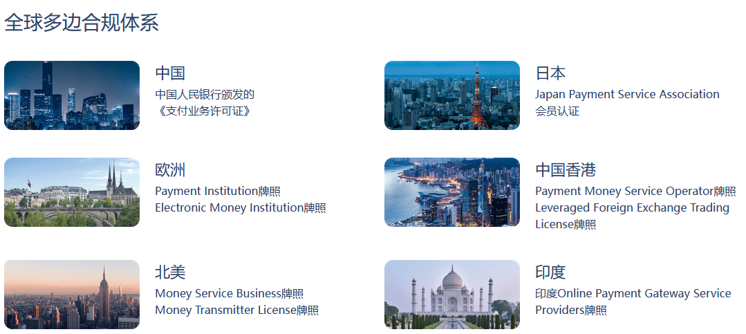 作為資金流服務(wù)的關(guān)鍵環(huán)節(jié),支付在多數(shù)國(guó)家都是重點(diǎn)監(jiān)管的項(xiàng)目。在跨境匯兌、資金分發(fā)等服務(wù)中,支付牌照作為展業(yè)的基礎(chǔ),是企業(yè)合規(guī)能力的直接體現(xiàn)。多年來,PingPong福貿(mào)始終堅(jiān)持“牌照先行,資質(zhì)先行”理念,致力于在全球范圍內(nèi)多個(gè)主要經(jīng)濟(jì)體國(guó)家及地區(qū)爭(zhēng)取獲得合規(guī)牌照,以打造堅(jiān)實(shí)穩(wěn)固的全球多邊合規(guī)體系。目前已擁有中國(guó)、歐洲、美國(guó)、日本、印度、澳大利亞等主要經(jīng)濟(jì)體的數(shù)十張支付類牌照及認(rèn)證資質(zhì),是國(guó)內(nèi)少有的雙邊持牌支付企業(yè)。