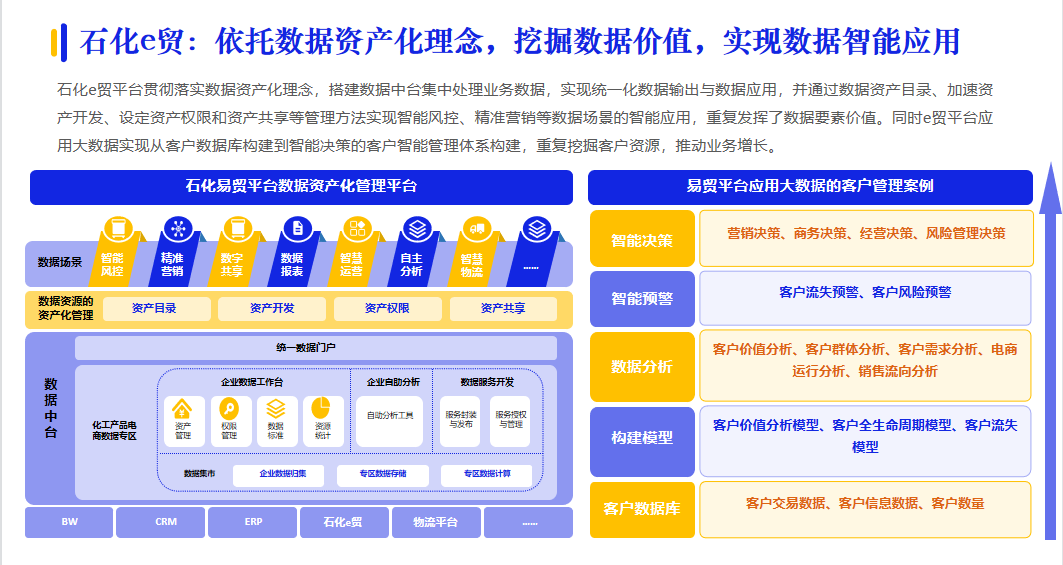 數(shù)字化采購帶來三大供應(yīng)鏈模式變革:商業(yè)模式、管理模式和服務(wù)模式。核心企業(yè)依托資源聚集優(yōu)勢(shì),將其資源整合能力和管理能力向外開放和輸出,提供開放的平臺(tái),實(shí)現(xiàn)盈利,引起商業(yè)模式變革;同時(shí),數(shù)據(jù)價(jià)值逐漸被釋放,實(shí)現(xiàn)數(shù)據(jù)驅(qū)動(dòng)的供應(yīng)鏈管理模式的變革;例如:石化e貿(mào)落實(shí)數(shù)據(jù)資產(chǎn)化理念,搭建數(shù)據(jù)中臺(tái)集中處理業(yè)務(wù)數(shù)據(jù),實(shí)現(xiàn)數(shù)據(jù)智能應(yīng)用。