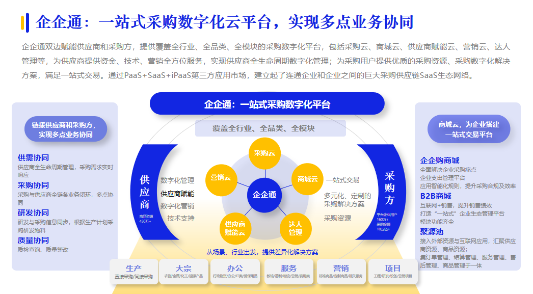 還有一采通,基于采購品類管理體系,打造了數(shù)智化采購平臺(tái)。