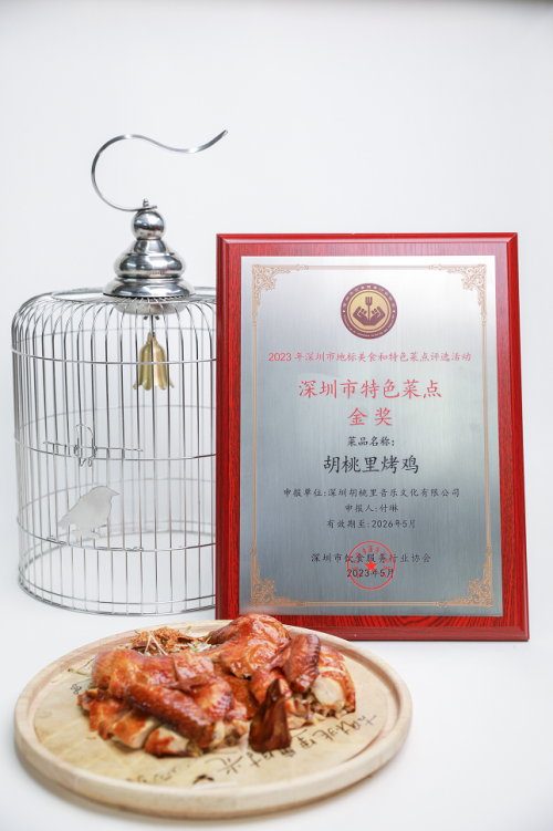 研發(fā)這道菜廚師團(tuán)隊就花了整整一年的時間,反復(fù)嘗試,才有了今天的成果。今年胡桃里烤雞也不負(fù)眾望地獲得了深圳餐飲名菜獎項!