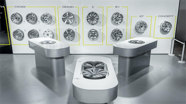 現(xiàn)場還展示了PLAY.STH的5個系列13款輪轂,分別為CROSS系列、X系列、GT系列、DES!GN系列、EV系列等,多款造型適配不同用車場景。這5個系列輪轂均為6061-T6 鋁合金材質(zhì)的鍛造輪轂,結(jié)構(gòu)強(qiáng)度高,成品輕量化。據(jù)了解,其中的CR01\CR02\CR03 款是國內(nèi)首批獲得 LM 認(rèn)證的輪轂,PLAY.STH所有輪轂產(chǎn)品在上市前均會主動完成車輪沖擊性能試驗(yàn)、車輪動態(tài)彎曲疲勞性能試驗(yàn)、車輪動態(tài)徑向疲勞性能試驗(yàn)等輪轂三大安全性能試驗(yàn),漆膜品控堅持更高要求的車規(guī)級標(biāo)準(zhǔn)。內(nèi)部輪轂及整車設(shè)計團(tuán)隊(duì)溝通配合,確保產(chǎn)品在造型出眾的同時,滿足安全可靠的基本要求。