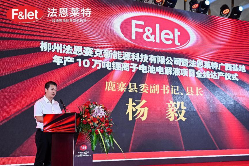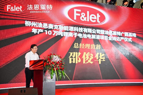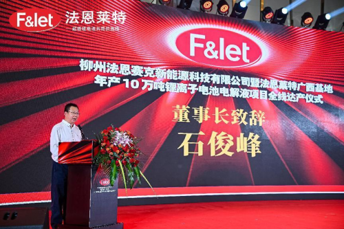 儀式上,法恩萊特邵俊華總經(jīng)理在致辭表示:柳州法恩賽克項目不僅是法恩萊特在華南區(qū)域作出的重大戰(zhàn)略部署,更是法恩萊特面向全球布局的重大舉措。法恩萊特將以此次項目全線達產(chǎn)為新的起點,發(fā)揮公司的技術(shù)、戰(zhàn)略、規(guī)模和品牌等優(yōu)勢,深耕細作新能源鋰電池行業(yè)材料電解液市場,深化新能源鋰電池行業(yè)更大范圍、更寬領(lǐng)域的務實合作,為新能源汽車、儲能系統(tǒng)、消費電池客戶提供更具優(yōu)勢、更高性能的超級鋰電池電解液解決方案,為新能源行業(yè)的持續(xù)創(chuàng)新貢獻更多力量。