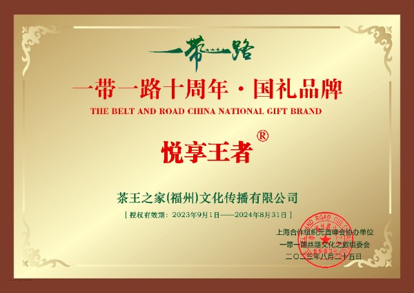 這次活動,由上海合作組織元首峰會、一帶一路絲路文化之旅組委會發(fā)起,旨在從各主要行業(yè)領域中,推選出具有代表性及良好用戶口碑的品牌及產(chǎn)品。“悅享王者”憑借其良好的理念定位、品牌形象、價值訴求以及“中國茶?世界語”的品牌情感共融,打動了所有評委,成功入選“一帶一路十周年?國禮品牌”。