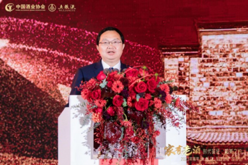 圖為五糧液集團(tuán)(股份)公司黨委書(shū)記、董事長(zhǎng)曾從欽致辭