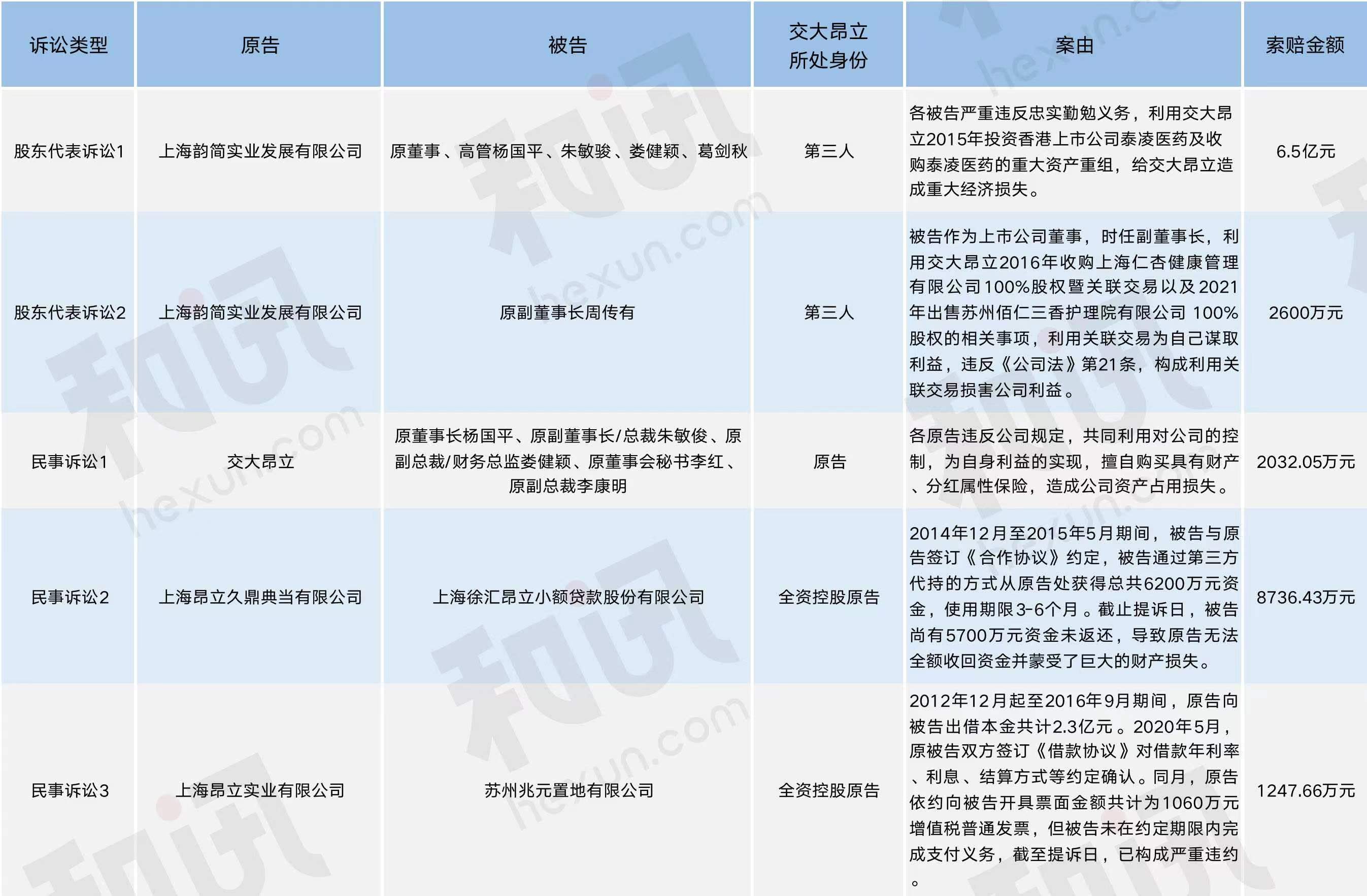另外,交大昂立還作為第三人,對(duì)原董事、高管楊國(guó)平、朱敏駿、婁健穎、葛劍秋等提起股東代表訴訟,認(rèn)為他們利用2015年泰凌醫(yī)藥重大資產(chǎn)重組損害公司利益,并向4名被告索賠6.5億元。根據(jù)最新披露,該案已移送至上海市第一中級(jí)人民法院處理。