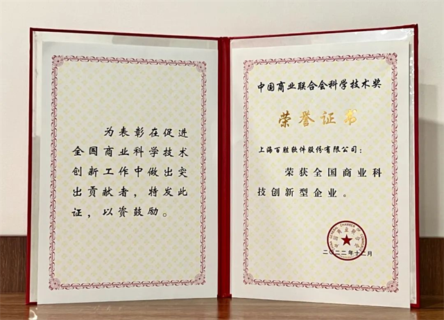 經(jīng)過中國商業(yè)聯(lián)合會(huì)評(píng)審專家組的嚴(yán)格評(píng)審,百勝軟件憑借在零售領(lǐng)域的諸多技術(shù)創(chuàng)新和推動(dòng)行業(yè)發(fā)展的突出貢獻(xiàn),榮膺“2022年全國商業(yè)科技創(chuàng)新型企業(yè)”,公司實(shí)力再獲權(quán)威認(rèn)可。