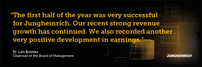 永恒力集團董事會主席Lars Brzoska博士解釋道:“今年上半年對永恒力而言可謂碩果累累。我們延續(xù)了近期營業(yè)收入強勁增長的勢頭。增幅達到了46%,我們在盈利方面再次實現(xiàn)了極為喜人的增長。通過收購Storage Solutions集團,我們在美國貨架系統(tǒng)和倉儲自動化領(lǐng)域贏得了一個重要的增長點。這一點目前已首次體現(xiàn)在集團的合并財務(wù)報表內(nèi)。我們繼續(xù)推進實施2025+戰(zhàn)略,并確認本年度的預(yù)測數(shù)據(jù)。永恒力已經(jīng)為迎接未來做好了充分的準備?!?/p>