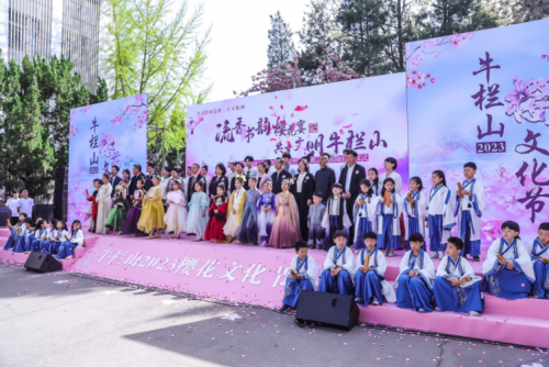 開幕式在孩子們的朗朗讀書聲中緩緩拉開,一群少年身著漢服在朝陽中誦讀《少年中國(guó)說》、《水調(diào)歌頭》。牛欄山地區(qū)黨委書記姜惠琴在致辭時(shí)表示:“以櫻花為媒,舉辦此次櫻花節(jié)活動(dòng),以沉浸式場(chǎng)景演出,融入全民閱讀,文明創(chuàng)城等活動(dòng),相信能夠給大家?guī)硪粓?chǎng)文化盛宴,也將為順義區(qū)打造一個(gè)更加亮麗、持久的文化旅游城市名片。”4月23日,將迎來第28個(gè)世界讀書日。牛欄山作為全國(guó)文明鎮(zhèn),姜惠琴在此倡導(dǎo)大家多讀書,讀好書,以書為媒,為文明創(chuàng)城創(chuàng)建賦能添彩,讓全民閱讀之氣彌漫,讓文明在全社會(huì)蔚然成風(fēng)。