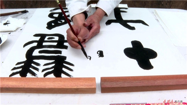 在農(nóng)家小院,閻正正在聚精會神地揮毫潑墨,他在筆墨的運用上別出心裁、匠心獨運,流暢的線條蒼勁有力,書法作品淋漓盡致地展現(xiàn)于尺幅之上。談起他創(chuàng)作的靈感,閻正說,“莊浪歷史悠久、文化底蘊深厚、森林植被覆蓋率高,儼然一幅天然山水畫。莊浪縣云崖寺自然風光秀麗,石窟藝術(shù)精美,有遠山、有水庫、有寺廟,它完全具備中國畫的每一個條件?!?/p>
