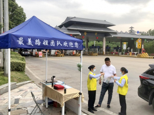 收費廣場的便民服務臺前,桌子上擺滿了高速地圖、住宿推薦、旅游攻略等各式各樣的宣傳手冊,緊急醫(yī)藥箱、簡易維修工具等一應俱全?!澳銈兪召M站附近有修車的嗎?我的車半路出了點問題,現(xiàn)在得趕緊找個修車的地方。”一位剛下道的貨車司機搖下車窗,焦急地詢問道?!澳葎e著急,右邊大概100米左右就有一家汽修店,不遠的。天熱了給您拿瓶水喝,解解渴。”志愿者一邊回應著,一邊為司機送上了礦泉水。“現(xiàn)在出發(fā)去武漢的話,路上堵車嗎?”帶著一家人準備回家的王師傅咨詢道?!澳梢躁P注‘湖北e出行’微信公眾號,上面有實時路況信息,以后開車的時候都用得上?!睋乃緳C操作不熟練,志愿者還手把手地進行了演示?!澳銈冞@有地圖嗎?”“有開水嗎?”“有沒有多余的口罩啊?”……一張張燦爛的笑臉,一次次悉心的解答,志愿者們用真誠和真心,化作了高速路口最靚麗的風景。