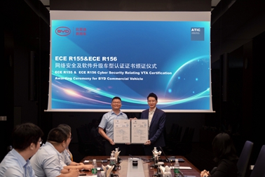 7月10日,國內(nèi)商用車首張UN ECE R155&ECE R156車型VTA證書頒證儀式在比亞迪總部舉行。比亞迪繼獲得商用車第一張ISO/SAE 21434網(wǎng)絡(luò)安全管理流程證書、R155 網(wǎng)絡(luò)安全管理體系(CSMS)以及R156軟件升級管理體系(SUMS)體系證書后,又率先獲得R155網(wǎng)絡(luò)安全及R156軟件升級車型認證(VTA)證書。