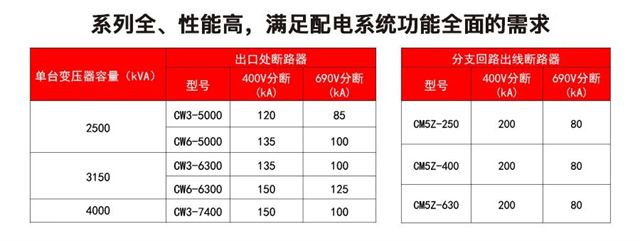 常開(kāi)是國(guó)內(nèi)首家推出7400A殼架斷路器的企業(yè),該產(chǎn)品的推出滿足了用戶4000KVA變壓器的用電需求。