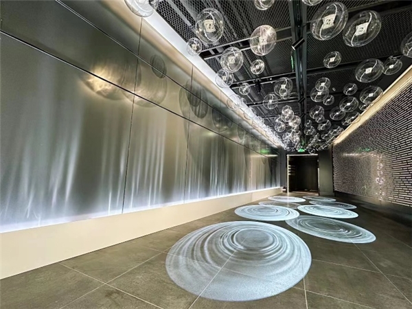 【水影】長廊通過水滴掛墜、漣漪投影及名言墻打造沉浸式光影體驗(yàn)