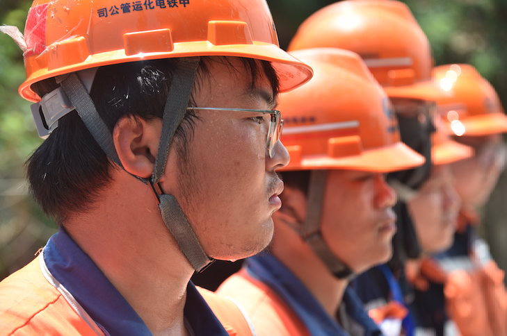 11點(diǎn)55分,封鎖命令一下,劉冉一馬當(dāng)先帶著大家沖到了線路上。由于鐵路線兩邊幾乎沒有任何遮陽的物體,經(jīng)過一上午的暴曬,鐵路線上的溫度已經(jīng)高達(dá)49.8℃,而現(xiàn)在頭頂上的太陽任然不斷地給鐵路上的道砟加熱,此時(shí)的鐵路線上,就像是一個(gè)巨大的烤箱。劉冉看著遠(yuǎn)處地面上的熱浪,拽了拽濕透后緊貼后背的衣服,招呼著后面的員工“大家動(dòng)作快點(diǎn),天窗只有109分鐘,不僅要檢修500米的設(shè)備,還要處理3處缺陷?!?/p>