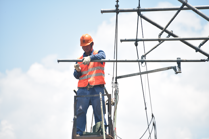 隨著作業(yè)時(shí)間的不斷增長,大家的體力也逐漸減少?!鞍?#xff0c;怎么感覺比我平常干高空還累?!贝嫘∨值男±瞵F(xiàn)在已經(jīng)開始?xì)獯跤趿?#xff0c;平日里輕松的車梯輔助工作,今天也變得格外艱難?!熬嚯x天窗作業(yè)還有30分鐘?!眻?bào)話機(jī)里傳來駐扎聯(lián)絡(luò)員的聲音。“收到!”說完,劉冉喝完了水杯里的最后一口水,擦了擦即將流進(jìn)眼睛的汗水,加快了干活的動(dòng)作。