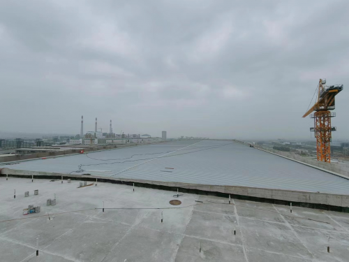 5月3日,隨著最后一塊壓形屋面板成功就位,由中鐵電氣化局集團(tuán)施工的凱賽(太原)生物材料有限公司DN項(xiàng)目-340單元土建項(xiàng)目C區(qū)鋼結(jié)構(gòu)屋面順利封頂。