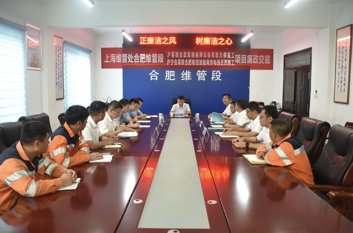 8月24日上午,中國中鐵電氣化局運(yùn)管公司上海維管處合肥維管段對合肥維管段滬蓉線合武段接觸網(wǎng)設(shè)備局部大修施工項(xiàng)目和滬寧合高鐵合肥樞紐接觸網(wǎng)供電線遷改施工項(xiàng)目進(jìn)行黨風(fēng)廉政交底。單位各級領(lǐng)導(dǎo)和工程項(xiàng)目關(guān)鍵崗位人員共計(jì)19人參加廉政交底會(huì)議。