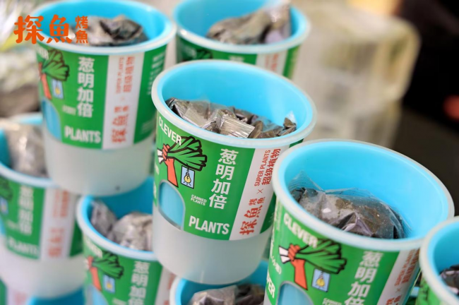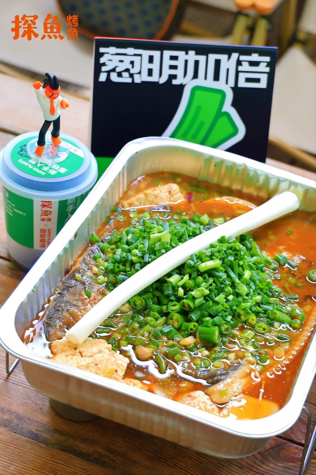 在產(chǎn)品研發(fā)上,探魚(yú)也充分考慮了顧客在感官、味覺(jué)、互動(dòng)等多方面的場(chǎng)景體驗(yàn),最新推出的“鮮青椒蔥蔥烤魚(yú)”就充分體現(xiàn)了這一點(diǎn)。鮮青椒蔥蔥烤魚(yú)在創(chuàng)新理念上,是探魚(yú)招牌口味“鮮青椒爽麻烤魚(yú)”口味的味型升級(jí),在藤椒口味的基礎(chǔ)上增加時(shí)令性的蔥香風(fēng)味,一經(jīng)推出,就頗受大眾喜愛(ài)。據(jù)悉,新品上市7天,已經(jīng)比去年同期上新的烤魚(yú)銷量上漲105%。在產(chǎn)品呈現(xiàn)上,新品上餐時(shí)配上一整棵鮮甜大蔥,然后由服務(wù)人員現(xiàn)場(chǎng)進(jìn)行“剪蔥儀式”,將蔥段下入鍋內(nèi),提味增香,同時(shí)為消費(fèi)者營(yíng)造一種新奇特的體驗(yàn)感。除此之外,探魚(yú)借勢(shì)本次上新,與最近大熱的植物品牌“超級(jí)植物公司”聯(lián)名推出可以種出小蔥的“蔥明種子卡”,不僅深化蔥的產(chǎn)品主題,還收獲了目標(biāo)客群“打工人”的情感共鳴。