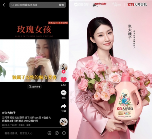 再加上與時(shí)尚媒體《嘉人》的合作,使得立白大師香氛品牌和抖音頭部達(dá)人都獲得了更為有力的時(shí)尚背書(shū)。