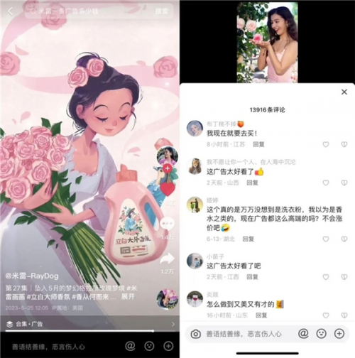 “最高級(jí)的抖音廣告,沒(méi)有之一?!币晃粊?lái)自廣東的用戶,在一條女漫畫(huà)家“米雷”發(fā)布的短視頻下方評(píng)論道。
