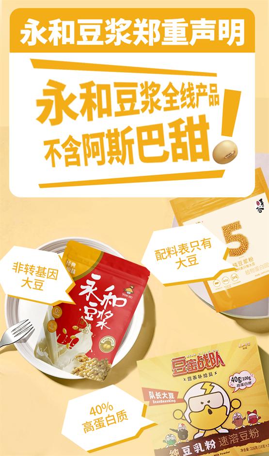 不含阿斯巴甜!永和食品的鄭重聲明給了消費(fèi)者一顆定心丸。40年品質(zhì)經(jīng)營,永和食品以其兼具營養(yǎng)與口感的豆?jié){粉產(chǎn)品,打造健康飲品,掀起清涼一夏。