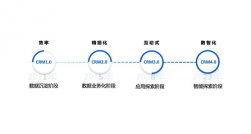 南訊向36氪展示了產(chǎn)品和服務(wù)的迭代升級,作為助力品牌連接用戶的紐帶,在不斷進化的十三年時間里,南訊圍繞ToC領(lǐng)域CRM的進化過程,將CRM從1.0到4.0總結(jié)為:數(shù)據(jù)沉淀階段、數(shù)據(jù)業(yè)務(wù)化階段、應(yīng)用探索階段、智能探索階段,并且提煉出了4個發(fā)展階段的核心要點:效率、精細化、互動式、數(shù)智化。