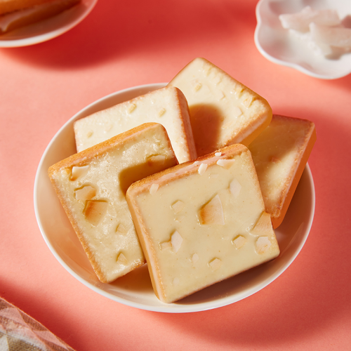 更讓人驚喜的,除了原有的原味、抹茶味、檸檬味等口味,梅尼耶干蛋糕又新研發(fā)出了添加真實黃桃果粒黃桃味、添加椰子片的椰子味以及含有巴旦木片的巴旦木味三種口味。 “老婆餅”里不一定有“老婆”,梅尼耶干蛋糕的新口味里可有真材實料噢!