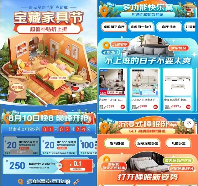 為了滿足“輕改大隊(duì)”的煥家需求,8月10日晚8點(diǎn),京東寶藏家具節(jié)全面開啟,打出“即刻煥新 ‘家’點(diǎn)新意”的消費(fèi)主張,聯(lián)合芝華仕、喜臨門、顧家家居、雅蘭、樂歌、源氏木語等家具大牌構(gòu)建多功能快樂窩、沉浸式睡眠臥室、氛圍感電競(jìng)房、智能陽臺(tái)、兒童學(xué)習(xí)區(qū)等多趨勢(shì)場(chǎng)景,并聚焦年輕人鐘愛的奶油風(fēng)、原木風(fēng)、侘寂風(fēng)等高顏值風(fēng)格,奉上眾多能讓生活增加新鮮感的寶藏家具好物。想要和李女士夫婦一樣,在不拆墻體的情況下,通過添置家具單品來極速煥新家的消費(fèi)者,可以從中找找靈感,并選購心儀的寶藏家具。