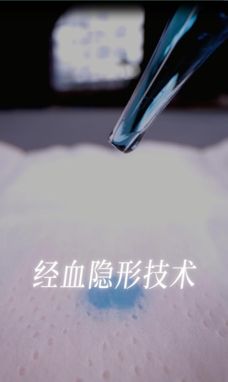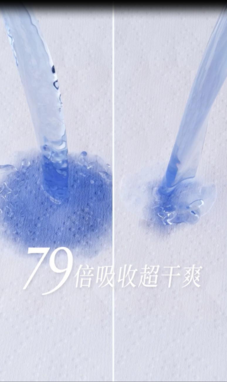 因此,從女性體感出發(fā),棉密碼無(wú)痕系列的面層、芯體全面創(chuàng)新。其中一大亮點(diǎn)在經(jīng)血隱形科技上,在面層與芯體材質(zhì)的共同作用下,能夠在經(jīng)血接觸后快速下滲,并在底部擴(kuò)散,視覺(jué)看起來(lái)表面只有一點(diǎn)點(diǎn),減少表層接觸肌膚的粘膩度,從而真正實(shí)現(xiàn)“視覺(jué)無(wú)感”。
