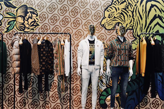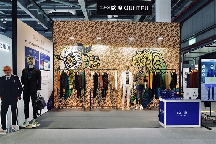 除了注重客戶體驗,現(xiàn)場服裝陳列搭配及展館搭建也很有講究。展廳內(nèi),第三代OT原創(chuàng)圖案與前Gucci設(shè)計師Paola Smania的“虎嗅薔薇”聯(lián)名印花,交相輝映,彰顯著歐度品牌的風格與調(diào)性。墻面上老花、猛虎、花卉幾大元素渾然天成,帶來強烈的視覺藝術(shù)美感。左側(cè)墻面還展出了《歐度與清華大學藝術(shù)與科學研究中心色彩研究所》有關(guān)中國男裝色彩研究的合作報告。