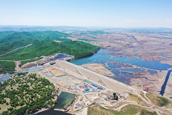 內(nèi)蒙古引綽濟(jì)遼工程加緊推進(jìn)。圖為引綽濟(jì)遼工程文得根水利樞紐施工現(xiàn)場。新華社記者 劉磊 攝