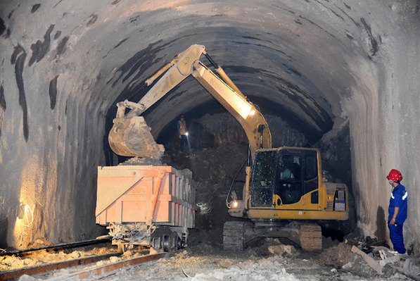 滇中引水工程建設(shè)全面提速。圖為5月30日,中國中鐵五局的建設(shè)者在滇中引水工程昆呈隧洞9號支洞內(nèi)施工。新華社記者 林碧鋒 攝
