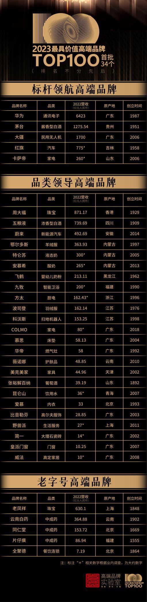 重磅!2023最具價值高端品牌TOP100(首批)榜單發(fā)布,卡薩帝、慕思、九牧、華帝、張裕解百納等品牌上榜(附榜單)