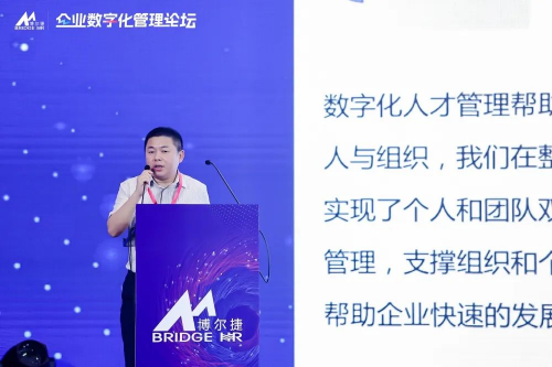 侯博士以2019年與中歐國(guó)際工商學(xué)院的忻榕教授、阿里巴巴產(chǎn)業(yè)互聯(lián)網(wǎng)中心主任陳威如教授歷經(jīng)兩年共同創(chuàng)作的《平臺(tái)化管理》一書(shū)作為理論指導(dǎo),以及多年人力資源行業(yè)經(jīng)驗(yàn)的沉淀和敏銳的市場(chǎng)洞察,總結(jié)構(gòu)建平臺(tái)化企業(yè)的重要性,包括小前端、強(qiáng)中臺(tái)和穩(wěn)后臺(tái)的建設(shè)。侯博士介紹了平臺(tái)化管理的五化模型:能力數(shù)字化、關(guān)系數(shù)字化、績(jī)效顆?;⒔Y(jié)構(gòu)柔性化、以及文化利他化。侯博士分享了博爾捷集團(tuán)的成功經(jīng)驗(yàn),鼓勵(lì)其他企業(yè)在探索和實(shí)踐中進(jìn)行數(shù)字化轉(zhuǎn)型和組織變革,以實(shí)現(xiàn)平臺(tái)化管理。