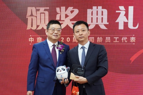 (中意人壽趙雪松董事長為20年司齡員工代表頒獎)