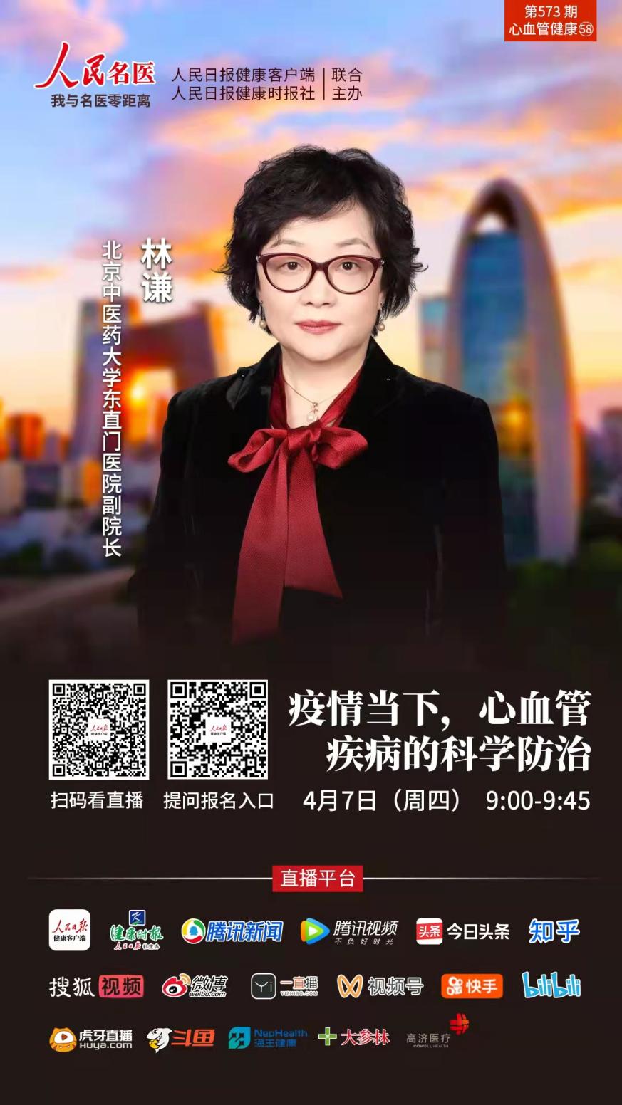 4月7日上午9:00~9:45,以嶺藥業(yè)聯(lián)合人民日報健康客戶端策劃的世界健康日直播訪談節(jié)目《疫情當(dāng)下,心腦血管疾病的科學(xué)防治》,特別邀請到北京中醫(yī)藥大學(xué)東直門醫(yī)院副院長林謙為大家進行權(quán)威解答!