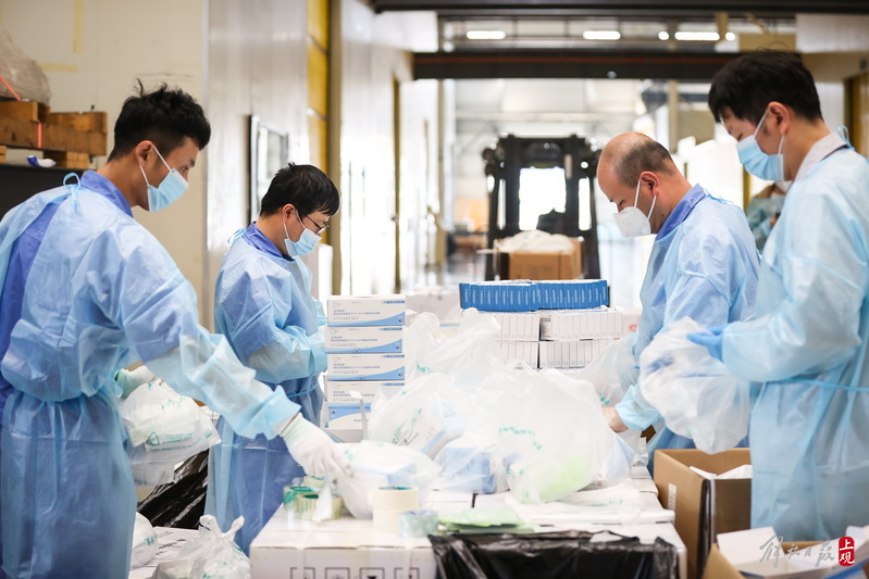 現(xiàn)場(chǎng)負(fù)責(zé)人楊東告訴記者:“我們是4月6日晚上接收到分裝任務(wù),目前累計(jì)打包送出8萬余份‘防疫服務(wù)包’,我們從早到晚能快一點(diǎn)就快一點(diǎn),就想著盡快把物資打包好送到居民手中。”