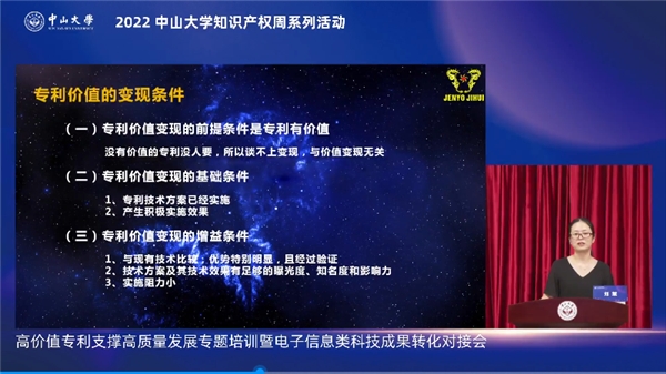 中山大學(xué)知識產(chǎn)權(quán)周系列活動高價值專利支撐高質(zhì)量發(fā)展專題培訓(xùn)暨電子信息類科技成果轉(zhuǎn)化對接會圓滿成功
