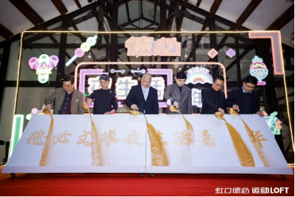 活動最后舉辦了虹口德必文旅夜生活嘉年華開幕式,強熒、汪建強、任義彪、朱琪、賈波、袁峰登臺,手持金沙,正式啟動了海韻潮虹·德必文旅夜生活嘉年華。
