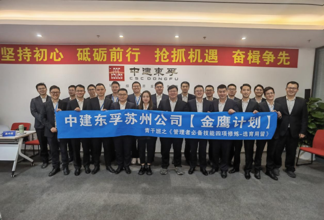 11月26日,中建東孚蘇州公司舉辦首屆“青年干部(后備人才)”培訓班。蘇州公司青年中層干部和后備人才共計25人參加培訓,蘇州公司黨總支副書記、副總經(jīng)理、工會主席牛春雷出席開班儀式并致辭。
