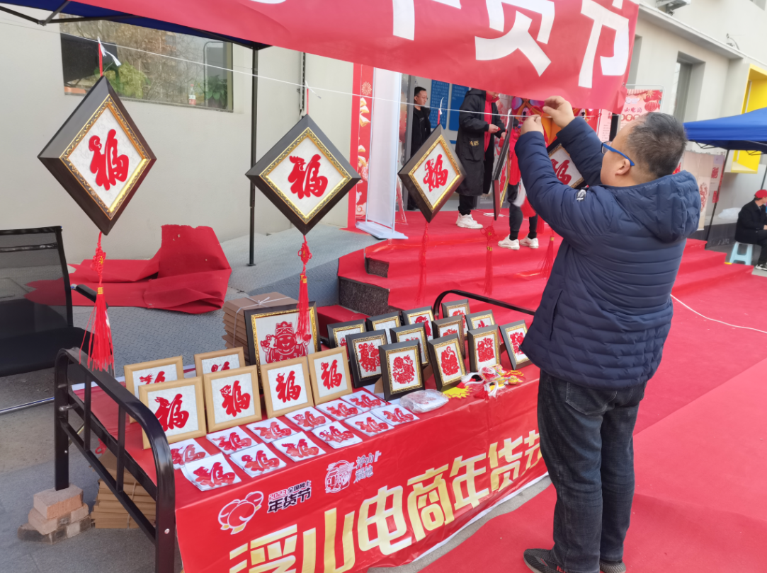 同時,浮山縣電商服務中心在室外為浮山縣14家農(nóng)特產(chǎn)品企業(yè)免費提供攤位,開展了農(nóng)產(chǎn)品、生活用品、過年禮品等展銷會,增加浮山縣年貨節(jié)的氛圍,讓浮山的優(yōu)質(zhì)農(nóng)產(chǎn)品被更多的人看見,浮山縣書法家協(xié)會也來助力電商年貨節(jié),現(xiàn)場書寫福字、對聯(lián)兩百余副,無償送給百姓。