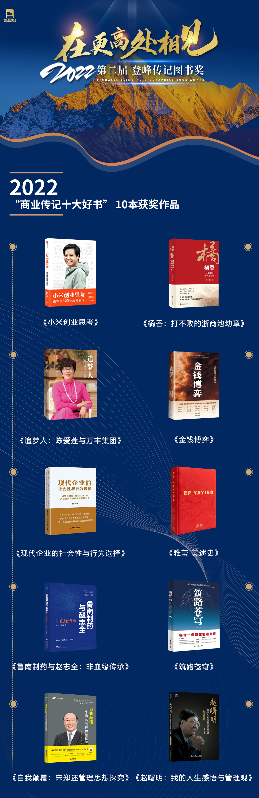 在更高處相見(jiàn)|第二屆登峰傳記圖書獎(jiǎng)揭曉,十部傳記入選年度好書,小米、敬業(yè)、華茂等入選