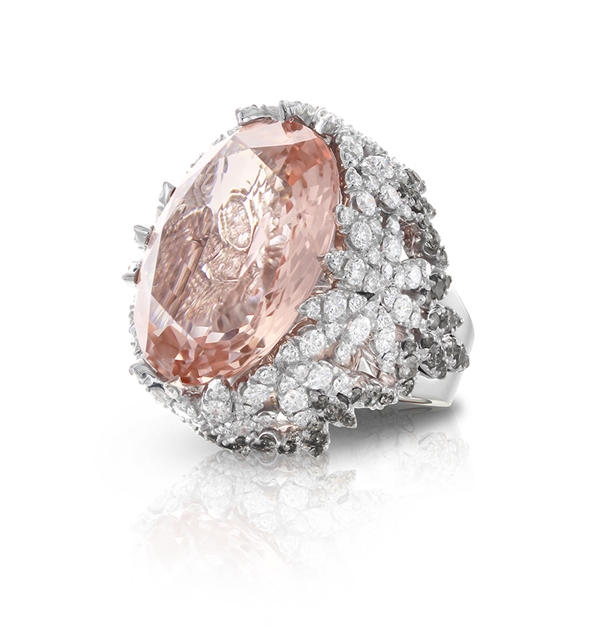 Bon Ton系列是Pasquale Bruni的經(jīng)典標志性系列作品,通過“五瓣花朵”的標志造型,詮釋代表女性優(yōu)雅、和諧的氣質(zhì)和精致的生活方式。獨家專利的“Bon Ton切工”,以精致的切割比例和切面的柔軟花瓣為象征,在寶石中心形成圓形花蕊。
