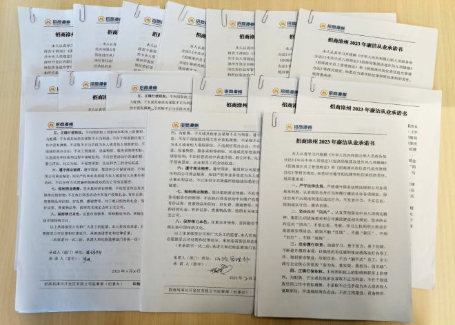 該公司紀(jì)委從發(fā)布簽訂《招商漳州2023年廉潔從業(yè)承諾書》后,黨委領(lǐng)導(dǎo)班子成員帶頭簽訂,11個部門和下屬企業(yè)黨支部,積極組織黨員干部員工認(rèn)真學(xué)習(xí)承諾內(nèi)容,實現(xiàn)210位在崗干部員工人人參與、全員覆蓋,進(jìn)一步強化自覺遵守廉潔從業(yè)規(guī)定的思想自覺和行動自覺。