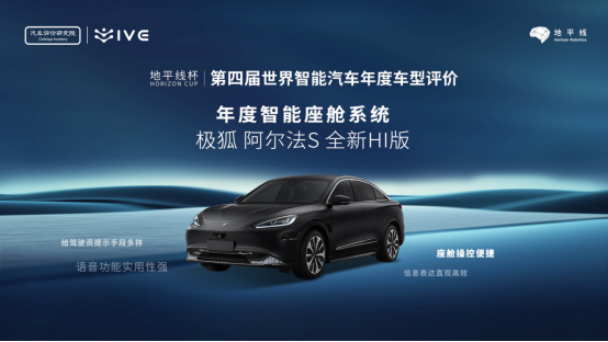 極狐阿爾法S全新HI版榮獲“地平線杯”第四屆世界智能汽車年度智能座艙系統(tǒng)榮譽稱號。