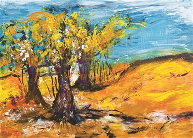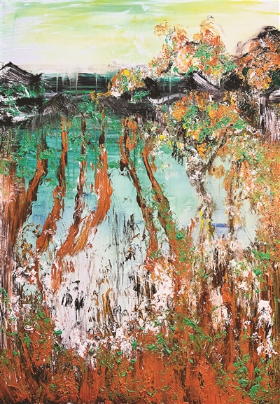 吳冠中老先生曾說,中國畫不能“近親結婚”。因為我們的視野狹窄。藝術是相通的,不分東方和西方。因此,劉家男不斷吸收東西方精華,并運用于作品之中。她的作品既能呈現(xiàn)出西方作品的色彩美感,同時又兼具中國潑墨的畫面呈現(xiàn)。無論是胡楊林系列,還是天端系列、鯨落系列以及自然系列,其作品的整體色彩都是非常大膽的,給人以強烈的視覺沖擊。劉家男認為,這是一個藝術家應有的標志性符號。