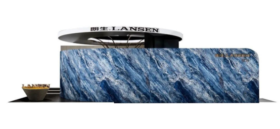 朗生展館以獨(dú)特的“海灣風(fēng)尚”造型,大膽新奇的海灣背景連紋花色,大面曲弧的空間造型,營造出全新的沉浸式空間體驗(yàn)感。
