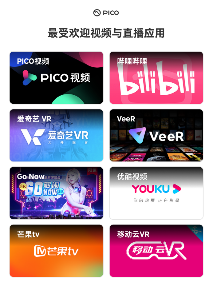 作為頭部XR品牌,PICO始終致力于幫助VR開啟大眾化之路,而豐富且優(yōu)質(zhì)的內(nèi)容和應(yīng)用生態(tài),是吸引大眾消費者購買VR、使用VR的關(guān)鍵。近兩年全球VR技術(shù)日漸成熟,產(chǎn)品快速迭代,PICO作為國內(nèi)最完善的VR內(nèi)容平臺,亦在持續(xù)完善內(nèi)容生態(tài),積極加速與第三方的合作腳步,并在自制內(nèi)容方面大力投入,致力打造國內(nèi)應(yīng)用最豐富、最優(yōu)質(zhì)的VR內(nèi)容平臺。迄今為止PICO應(yīng)用商店已擁有超過200款國內(nèi)外優(yōu)質(zhì)的VR應(yīng)用。